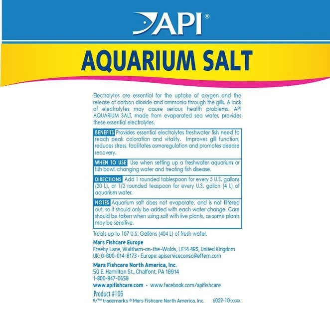 API AQUARIUM SALT: Not for saltwater aquarium. Care should be taken when using salt with live plants, as some plants may be sensitive.