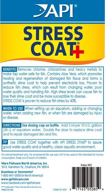 - With aloe-infused Stress Coat to make tap water fish-safe by removing chlorine, ammonia and chloramines, and detoxifying heavy metals.