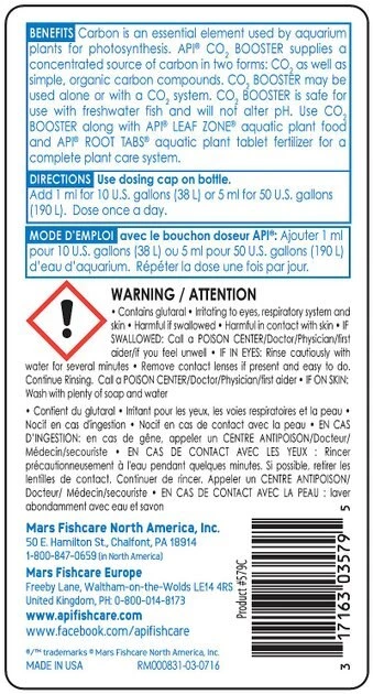 Grow beautiful, healthy aquatic plants with API CO2 Booster care treatment. All plants need carbon to grow—the same way humans and animals need food to thrive, plants need a little something to keep going, too! Carbon deficiency is a leading cause of poor aquatic growth, but this treatment may help your underwater plants thrive. It supplies simple carbon compounds and slowly releases CO2, which your plants can absorb through the water. Best of all, it won’t alter pH, and is safe to use in freshwater environments.