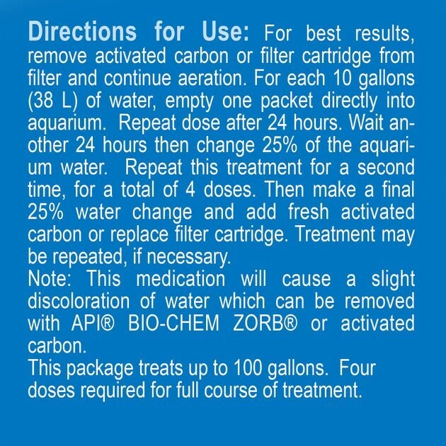 - Helps with fin and tail rot, bacterial gill disease, hemorrhagic septicemia, open red sores, and body slime and eye cloud.