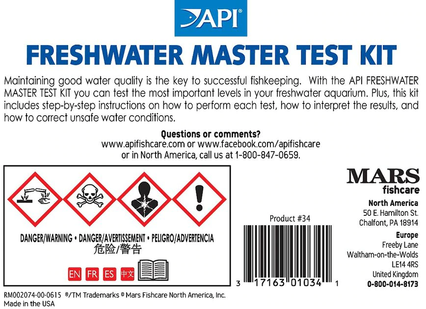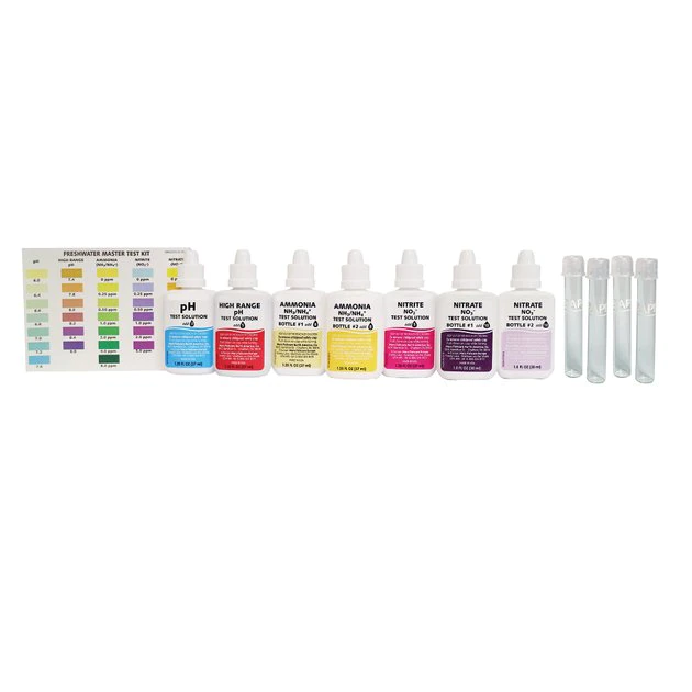 Quickly measure and modify the six aquarium levels that are most important to the health of your freshwater fish with the API Freshwater Aquarium Master Test Kit. To stay healthy and thrive, fish need properly balanced levels of ammonia, pH, high range pH, nitrite and nitrate. These levels can change rapidly and create harmful conditions when fish waste, uneaten food or other organic matter accumulate, or when untreated water is added. The API Freshwater Aquarium Master Test Kit measures these six parameters with scientific accuracy and provides professional results. It comes with four test tubes, a holding tray, a test tube rack and a computer calibrated, laminated color card. Just fill the test tubes, add the test drops and compare results to the color card. Then follow the recommendations on the card if action is required.