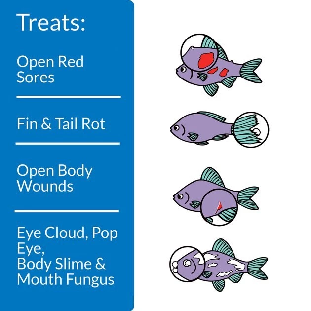 - Formulated to heal bacterial infections such as tail and fin rot, eye cloud, mouth fungus and more.
