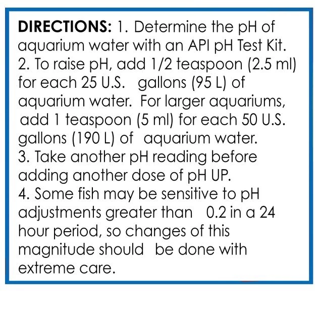 - To raise pH, add ½ teaspoon (2.5 ml) for each 25 U.S. gallons of aquarium water.