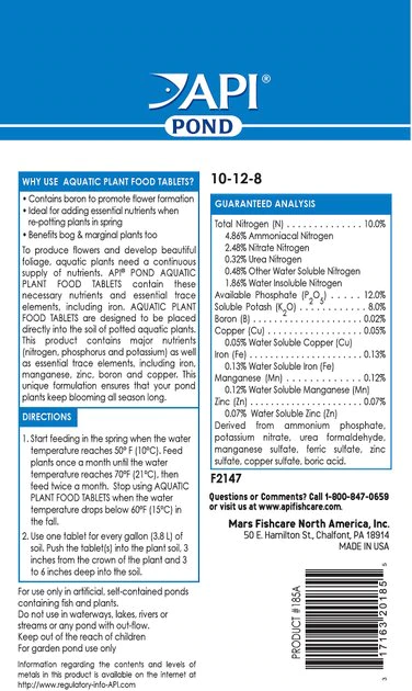 - Aquatic plant food contains essential nutrients and trace elements needed by pond plants for non-stop blooming.