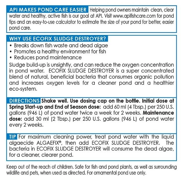 API POND ECOFIX SLUDGE DESTROYER is safe for fish and surrounding wildlife when used as directed.
