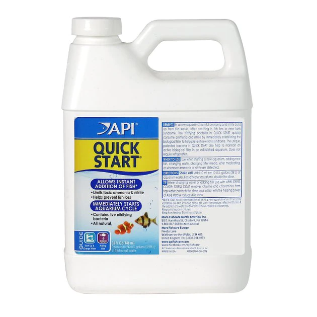 Get prepared for the newest members of your finned family with API Quick Start Freshwater And Saltwater Aquarium Nitrifying Bacteria. This solution allows for the immediate addition of fish to a new tank as it starts the natural aquarium cycle with beneficial bacteria. That bacteria converts toxic ammonia into harmless nitrate. It also prevents fish loss in both freshwater and saltwater aquariums. API Quick Start Freshwater And Saltwater Aquarium Nitrifying Bacteria is an ideal option when starting a new aquarium, adding new fish or when changing water and filter.