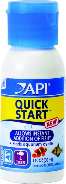 Jumpstart your set-up process and add your new finned friends to fresh and saltwater aquariums instantly with API Quick Start Aquarium Water Conditioner. This formula contains unique, patented bacteria that starts removing ammonia and nitrites on contact, so fish can be added immediately. It is scientifically tested to help consume these harmful chemicals, and may make it easier and faster to move your fish into the aquarium. It can also be used during water or filter media changes, after medicating or when ammonia and nitrite are detected.