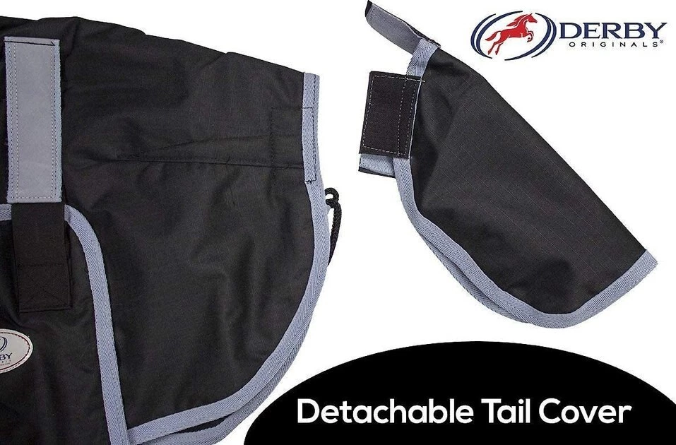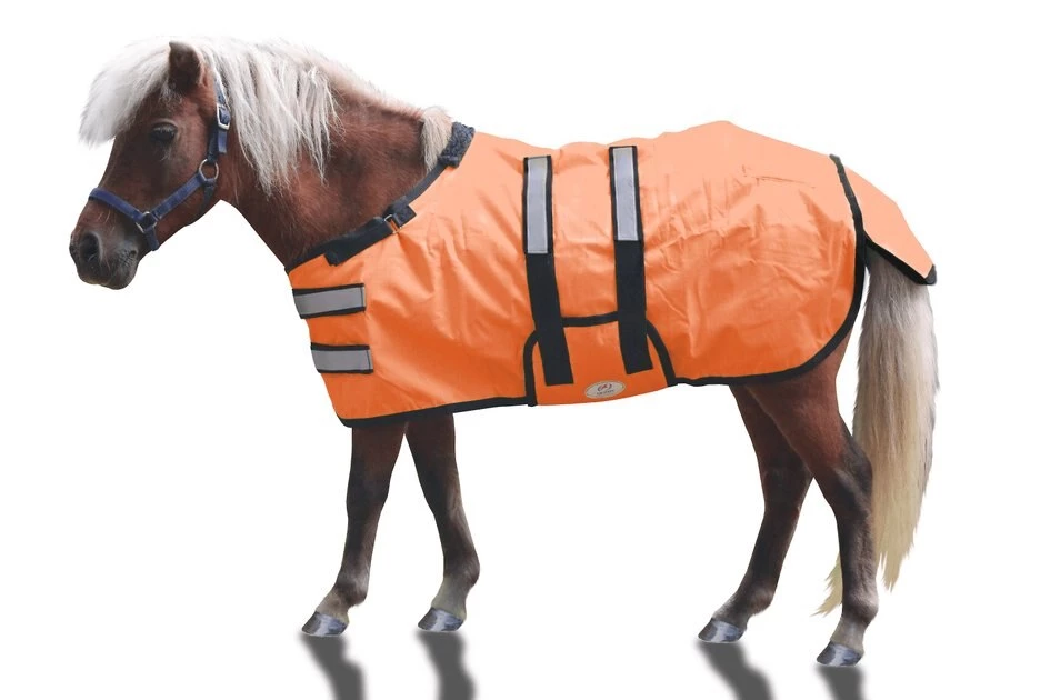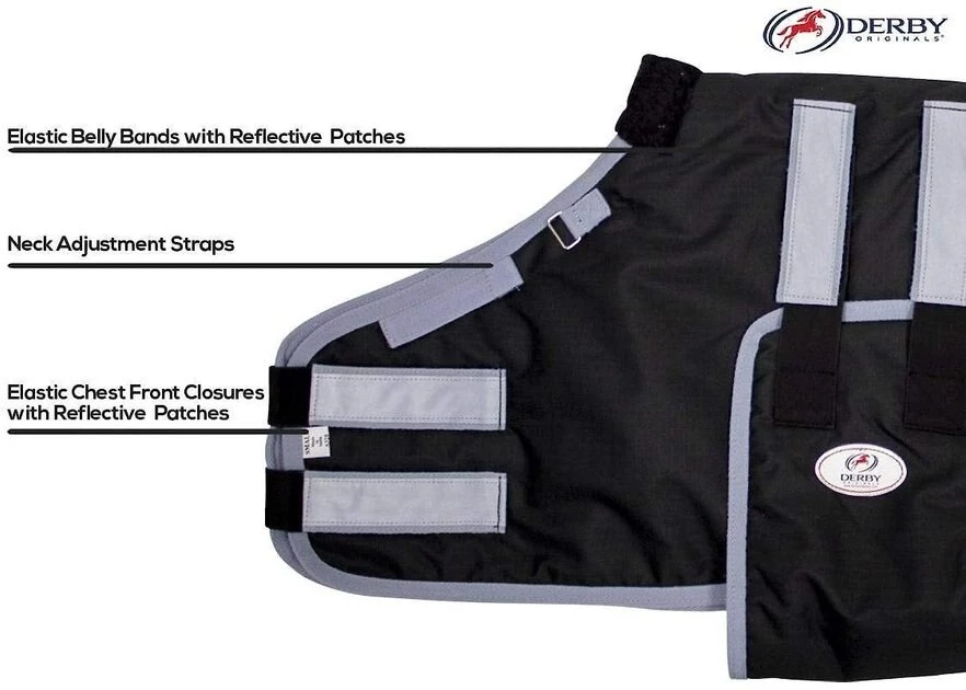 Keep your cantering companion covered with the Derby Originals 600D Reflective Waterproof Winter Foal & Mini Horse Turnout Blanket. This waterproof winter turnout blanket for your foal or mini horse is designed to be durable, safe and comfortable. It is crafted without any hardware to help prevent injuries. This winter turnout blanket features a silky-smooth no-rub 210T lining, plush fleece wither protector, removable tail cover, padded belly band and an adjust-to-fit neck. It is equipped with a double hook and loop wrap system for the chest and belly areas that allows for length and girth adjustments up to 6-inches for use with growing foals or multiple horses.