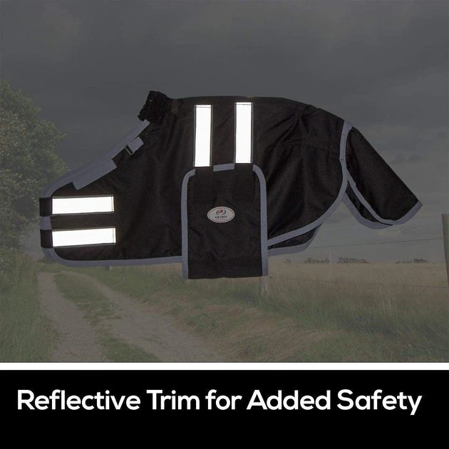 - Features a silky-smooth no-rub 210T lining, plush fleece wither protector, removable tail cover, padded belly band and an adjust-to-fit neck.