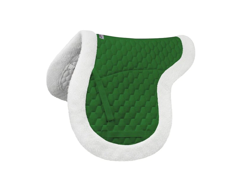 Add some comfort to your sidekick’s saddle with the Derby Originals AP Fleece Padded Contour English Horse Saddle Pad. This English-style saddle pad is designed to look like a high-end show pad and perform like a daily schooling pad. It features heavy-duty diamond-quilted cotton twill, hook and loop billet keepers and girth loops. This contoured saddle pad is crafted with a soft washable fleece lining on the underside and a thick fleece trim around the edge. It is built to be a great all-purpose pad that fits most English saddles up to 18-inches in size.