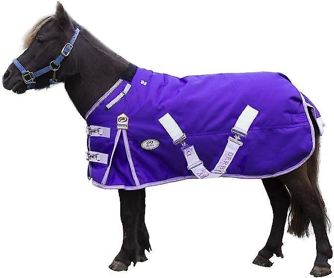 Gear up your little guy with the Derby Originals Extreme Elements Nordic-Tough 1200D Ripstop Waterproof Winter Heavyweight Mini Horse & Pony Turnout Blanket. This waterproof turnout blanket for mini horses features a modern contoured design that’s comfortable and durable. It is equipped with quick-clip double chest buckles and adjustable neck straps for just the right fit. This innovative mini horse turnout blanket is constructed using a 1200D waterproof ripstop exterior, 300g polyfil insulation and a soft but strong 150D inner lining. It’s crafted to be reflective for safety and is ideal for use both indoors and outdoors to keep your cantering companion comfy.