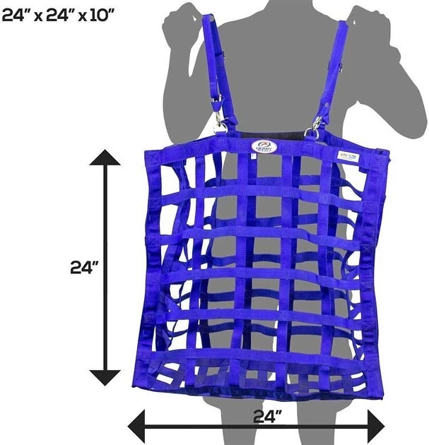 Keep your dude on his diet with the Derby Originals Paris Tack Easy Feed 4-Sided Slow Feed Horse Hay Bag. This slow-feed hay bag for horses is engineered to help slow down hay consumption and reduce waste. It features an exclusive patented four-sided design that allows your horse to eat comfortably from any angle. This horse hay bag is crafted to support natural grazing patterns and healthy digestion. It is constructed using super-tough, double layered, 1200D nylon with three-inch by three and a half-inch rectangular openings to give your amigo easy access.