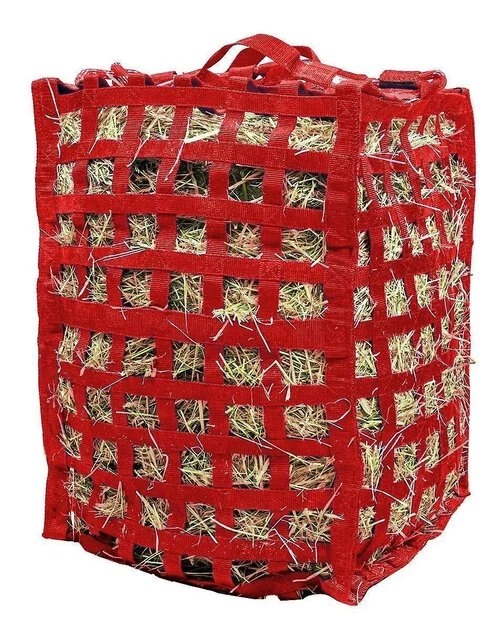Help your dude digest his food with the Derby Originals Paris Tack Grazer 4-Sided 3/4 Bale Slow Feed Horse Hay Bale Bag. This slow-feed hay bag for horses is engineered to help slow down hay consumption and reduce waste. It is crafted to hold approximately ¾ of a bale of hay and is equipped with premium hardware. This horse hay bag features an exclusive patented four-sided design that allows your horse to eat comfortably from any angle while supporting natural grazing patterns and healthy digestion. It is constructed using heavy-duty, double layered, 1200D nylon and two-inch square openings for your amigo.