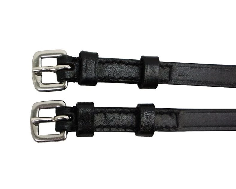 Ensure that your spurs stay secure with Derby Originals Premium English Leather Spur Straps w/ Keepers. These English spur straps with keepers are crafted using premium leather and measure 3/8-inches wide. They feature high-quality stainless steel buckles that shimmer and shine. These leather spur straps with keepers are built to be supple, thin, and flexible. They are designed for long-lasting durability and are a must-have for any English rider.