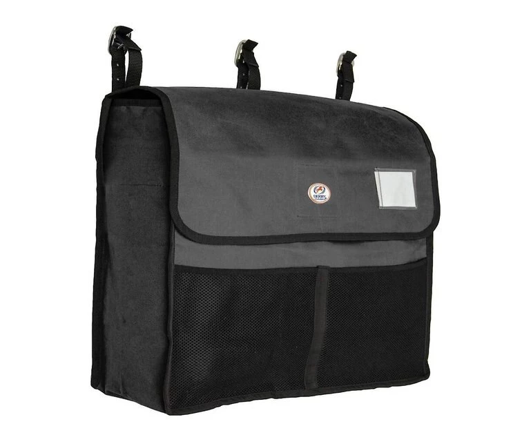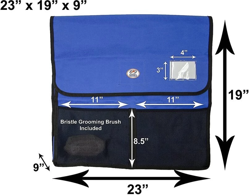 Keep bugs and rodents away from buddy’s blanket with the Derby Originals Premium Horse Blanket Storage Bag. This storage bag for horse blankets is crafted in a generous-size to fit multiple blankets. It features four inside pockets for storage containing silica gel desiccant bags to help prevent mold and mildew. This horse blanket storage bag is constructed to be easy to hang in your tack room or in a stall. It includes a built-in three-inch by 4-inch plastic name tag slot to help you keep everything organized.