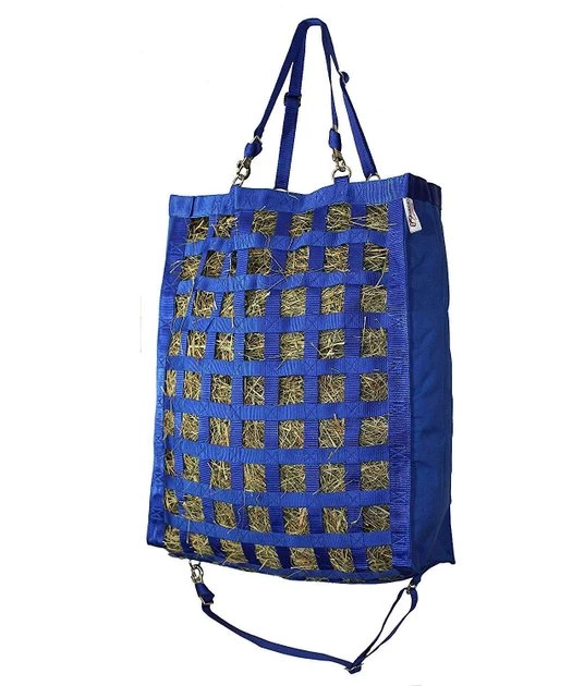 Pack your saddled sidekick a bagged lunch with the Derby Originals Super-Tough Bottom Supreme Slow Feed Horse Hay Bag. This slow-feed hay bag for horses is engineered to help slow down hay consumption and reduce waste. It features an exclusive super tough bottom design for strength and durability. This horse hay bag is crafted to support natural grazing patterns and healthy digestion. It is constructed using heavy-duty, double layered 1200D nylon with 108 cross stitches and uniform two-inch openings to give your amigo easy access.