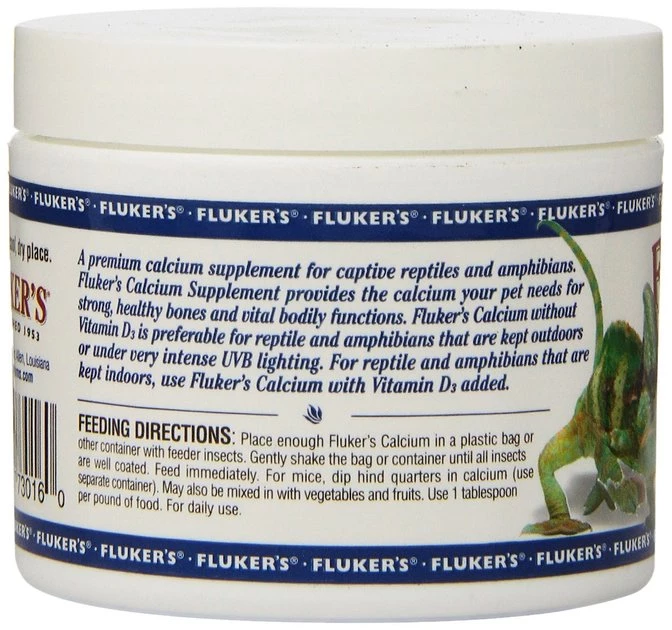 In captivity, it is very important for reptiles to get their daily vitamins and minerals in their diet or else health complications may arise. Fluker’s Calcium without Vitamin D3 Outdoor Reptile Supplement is great for making sure your reptile is getting every supplement he needs to lead a healthy and prolonged lifetime. This supplement is essential for all outdoor captive reptiles and amphibians or pets that are kept under very intense UVB lighting. It provides the calcium your pet needs for strong, healthy bones and vital bodily functions.