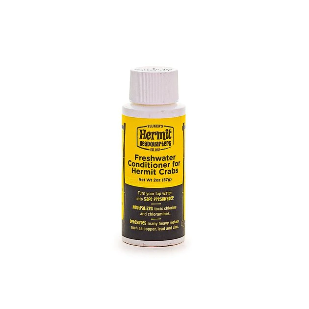 Hermit crab paw-rents know that our crabby pals need a dish of fresh water for drinking and soaking. Fluker’s Freshwater Hermit Crab Conditioner makes water from your tap safe for those activities by neutralizing toxic chlorine and chloramines. It also detoxifies many heavy metals such as copper, lead, and zinc. This water conditioner is easy to use every time you change your crab’s water.