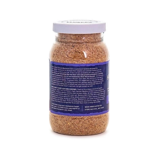Feed as the primary source of food to mealworms. Add 1 to 2 inches of Fluker’s High-Calcium Mealworm Diet to your mealworm container. Toensure optimal nutrition and calcium intake, let your mealworm feed on the diet for 48 hours before offering to your pet. Replace diet once it breaks down and becomes dusty. If keeping mealworms longer than one week, you may store them in a refrigerator to prevent them from changing into beetles.