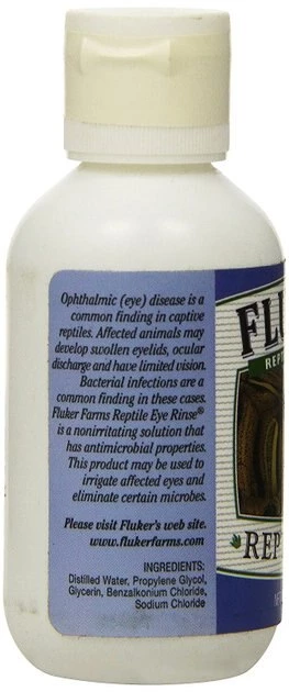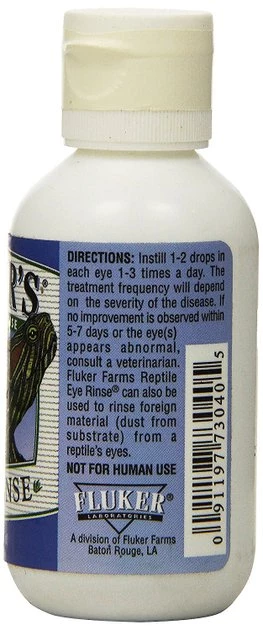 Instill 1-2 drops in each eye 1-3 times a day. The treatment frequency will depend on the severity of the disease. If no improvement is observed within 5-7 days or the eye(s) appears abnormal consult, a veterinarian. Fluker Farms Reptile Eye Rinse can also be used to rinse foreign material (dust from substrate) from a reptile’s eyes.